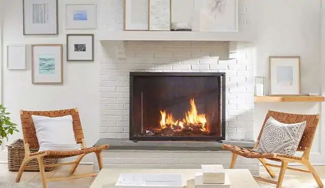 You may pick any color you think is the most fitting, but here are some general rules you can follow. The color should either match or contrast the rest of the room. When it comes to the sheen of the color, it should be very low because you want it to reflect as little light from the fire as possible. Black and white are always a solid choice, or if you want to preserve the natural color of the bricks, you can use red.